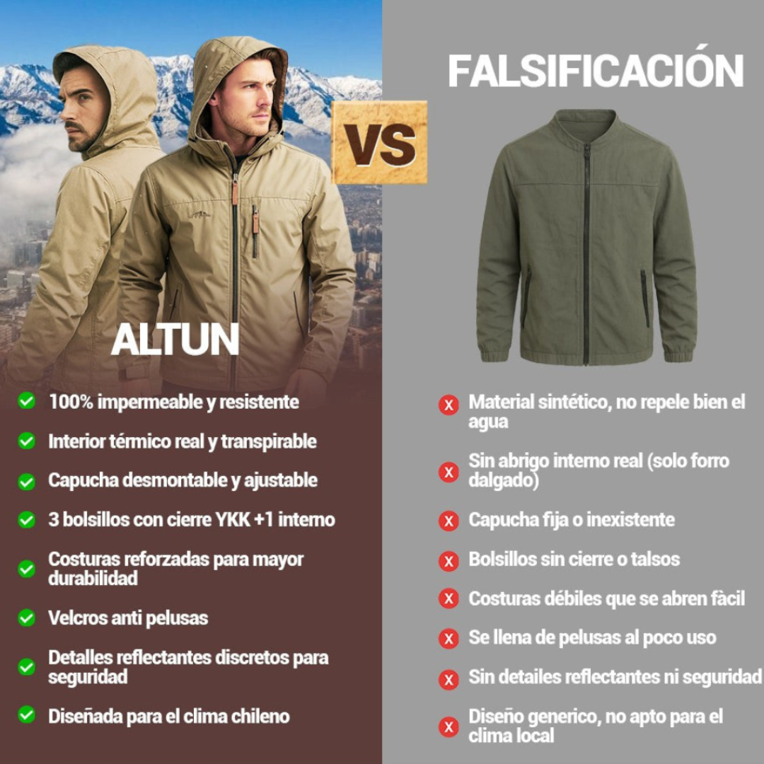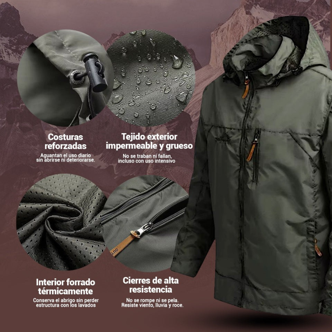 La Chamarra Cumbre Norte™ está hecha con materiales que sí repelen el agua . A diferencia de imitaciones, no te mojarás ni en tormentas. Costuras selladas, capucha ajustable y diseño técnico que cumple lo que promete. Llueve, corre, camina… sin preocuparte por el clima.